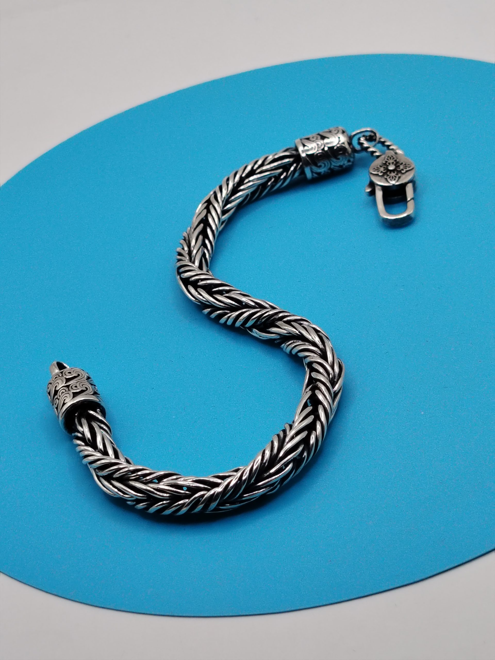 Handcrafted twisted foxtail design in a minimalist Bali Woven style — sleek, lightweight, and elegant with a secure hook clasp.